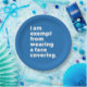 Muchas personas están usando mascarillas y otras coberturas para protegerse del COVID-19 y de infecciones similares; en algunas partes del mundo, existe un requisito legal para usarlas en ciertas áreas. Sin embargo, no todos pueden usar una máscara. Algunas personas están exentas por razones de salud u otras. A menudo se conceden exenciones a los niños. También se aconseja a las personas con asma, dificultades respiratorias, ansiedad y muchas otras afecciones que no usen mascarillas. Este diseño tiene la intención de dejar esto claro a todos los que lo rodean. El texto claramente dice "Estoy exento de usar un cubrimiento de cara".