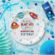 Tema del cumpleaños espacial de los niños. Fácil de personalizar. También disponible como invitación para descargar digitalmente! Primavera, fiestas de verano nave espacial, planetas, luna, estrellas, nave espacial alienígena, fuente de escritura divertida