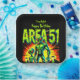 Dos alienígenas espeluznantes con ojos brillantes se encuentran bajo una vibrante puesta de sol de neón, rodeados de OVNIs flotantes. Los colores retro-futuristas y el diseño detallado le dan vida a la intriga atemporal del Área 51, ofreciendo una mirada audaz y cautivadora al misterioso mundo de los encuentros extraterrestres.