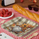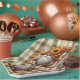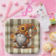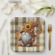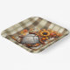 A Brown And Beige Plaid Square Paper Plate Designed With A Fall Cute Colored Gnome