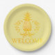 La piña ha sido un símbolo de hospitalidad durante siglos. Silueta de piña dorada y gráficos de corona con texto de "bienvenida"