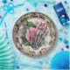 Esta atractiva placa de papel de Halloween de época presenta un dibujo a mano en blanco y negro rodeado de rosas rosas rosas rosas. Otros elementos incluyen el historial de un periódico vintage. El diseño del borde exterior de la placa recuerda a las placas de vintage.