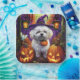 Plato De Papel Fantasma Bichon Frise Halloween Bruja Y Calabaza