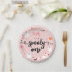 Fantasma un lindo plato de papel de cumpleaños fantasma de Halloween. Diseño moderno con temática de Halloween para un fiesta espeluznante! Este plato de cumpleaños incluye telarañas, fantasmas, calabazas, murciélagos, arañas, hojas, maíz, estrellas y margaritas. ¡Este plato de papel es genial para las fiestas de cumpleaños de las niñas!