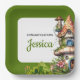 Cute magical forest fairy house baby shower paper plates, change the text yourself when you order