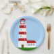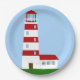 Faro de rayas rojas y blancas con la casa sobre fondo azul