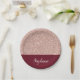 Plato De Papel Faux Rosa Gold Purpurina con Borgoña