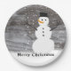 Plato De Papel Felices Navidad del muñeco de nieve rústico blanco