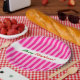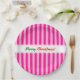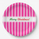 Plato De Papel ¡"Felices Navidad! "; Rayas rosas claras y de