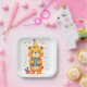 Plato De Papel Felices saludos de cumpleaños de un lindo oso pequ