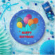 ¡Enhorabuena! Diseño festivo con globos y cielo estrellado azul. "Cumpleaños feliz" es una plantilla que significa que puedes dejar tal cual o insertar tu propio mensaje.