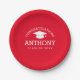 Plato De Papel Felicidades Graduado Cap blanco rojo