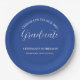 Estos elegantes y modernos platos de papel para la fiesta de graduación presentan una tipografía de escritura atractiva y hermosa a la sombra de un fondo azul real. Personalice este producto agregando el nombre y la escuela o su presupuesto favorito. ¡Clásico y fácil de personalizar! Celebra el logro del graduado con estilo. Se dispone de material para fiestas de graduación coincidente. ¡Enhorabuena!