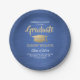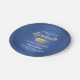 Añada un toque elegante y personalizado a la decoración de la fiesta de graduación de la universidad o la escuela secundaria con estos platos de papel azul, dorado y blanco personalizado. El diseño presenta un fondo real de acero inoxidable color azul falso cepillado, un tapón de graduación con aspecto de Relieve metalizado metálico, una tipografía moderna y elegante y caligrafía de escritura a mano. Tenga en cuenta que el oro es color impreso, no Relieve metalizado. ¡Felicitaciones al graduado!