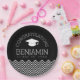 Un diseño moderno y mínimo para una celebración de graduación. Añada el texto del personalizado de su graduado al diseño en blanco y negro para hacer un recuerdo o un favor de una fiesta de graduación.