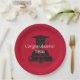 Placas de papel personalizables, sólo personalizar para cambiar el texto, fuente, color, etc.! Mostrado con las palabras Felicitaciones Trisha con tipografía blanca en un plato rojo. HAMbyWhiteGlove