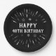 Plato De Papel Feliz 40 cumpleaños fuegos artificiales Gris blanc