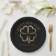 Feliz Año Nuevo o tu texto Cuatro Leaf Clover Negro y Oro, Faux Gold Clover, Elegant New Year's Fiesta o Good Luck Occaum Plates de papel, puedes cambiar o borrar todo el texto