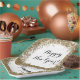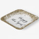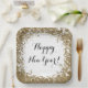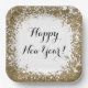 Una placa blanca de papel de Año Nuevo Feliz con un diseño impreso de purpurina dorado y un mensaje de guión. Edite usando el editor de texto para hacer su propio mensaje si lo desea. Perfecto para una noche de Año Nuevo casual y elegante.