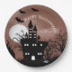 Un gran castillo negro y árboles desnudos contra un espeluznante cielo nocturno, estos platos personalizados de papel Happy Halloween son divertidos para un fiesta de disfraces de Halloween, fiesta de cumpleaños de Halloween o cualquier ocasión. COINCIDIENDO elementos de nuestra colección.