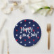 Feliz cuarto de julio texto de escritura moderna, estrellas rojas blancas y azul marino patrón adorable fiesta festiva patriótica fiesta de fiesta de las Placas de papel. Patrón de estrellas rojas y blancas, fondo azul marino.