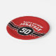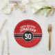 Rojo, Blanco y Negro - Este diseño deportivo de franjas jersey es perfecto para cualquier fiesta masculina de cumpleaños. Cambias los números a una edad especial para una celebración de cumpleaños. Un diseño masculino y escarpado con un espacio para un nombre y una edad.