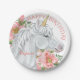 Plato De Papel Feliz cumpleaños a unicornio floral personalizada