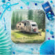 Estas placas de papel presentan un camper con fondo de madera. El texto puede cambiarse o eliminarse según sus necesidades.