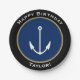 Plato De Papel Feliz cumpleaños del ancla náutica con nombre
