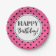 Plato De Papel Feliz cumpleaños Fiesta puntos rosados blancos neg