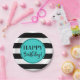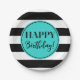 Plato De Papel Feliz cumpleaños Fiesta Turquoise Black White
