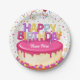 Plato De Papel Feliz cumpleaños, globo de pasteles y confetti