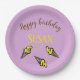 Plato De Papel Feliz cumpleaños, helado amarillo en morado
