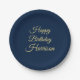 Feliz cumpleaños guión dorado azul marino nombre personalizado fiesta elegante Placas de papel