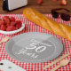 Celebrar un cumpleaños número 50 con un plato personalizado que muestra el nombre del destinatario, y el número de años. Placa de papel para un niño de 50 años. 50 años.