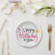 "¡Añada un toque de alegría a las celebraciones de cumpleaños con nuestros deliciosos platos de papel de 'Cumpleaños feliz'! Con colores vivos y diseños festivos, estos platos son perfectos para servir deliciosas delicias y para darle un toque de celebración a cualquier fiesta".