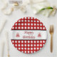 Placa feliz de papel de cumpleaños con puntos de polka. Este diseño fue creado por Debbie Quick de Debs Creative Designs: www.debscreativedesigns.com