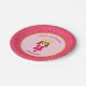 Feliz Cumpleaños princesa, plato de papel con una encantadora niñita con el pelo de morena vestido con magenta sobre magenta y rosa con confeti dorado. El texto y el número se pueden personalizar.