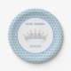 Feliz cumpleaños, plato de papel de princesa con una tiara encantadora en blanco y turquesa con confeti de diamantes. El texto y el número se pueden personalizar.