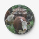 ¡Estos divertidos platos de papel incluyen vacas Connecticut en el bosque con un divertido mensaje de cumpleaños!