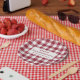 Plato De Papel Feliz Día de Acción de Gracias Burgundy Gingham Pl