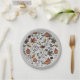 Estos platos de papel de personalizado Happy Thanksgiving presenta una cosecha de otoño con calabazas coloridas, calaveras de vaca adornadas con rosas, bellotas y follaje otoñal sobre un elegante fondo gris suave y el borde.