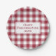 Plato De Papel Feliz Día de Amistad Burgundy White Gingham Plaid