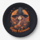 Plato De Papel Feliz Halloween con brujas y calabazas
