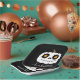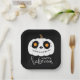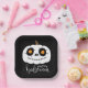 Happy Halloween Script Cute Pumpkin Paper Fiestas Plates presenta el texto "Halloween feliz" en escritura moderna con una calabaza con cara de miedo sobre un fondo negro. Ideal para fiestas y celebraciones de Halloween. Diseñado por ©Evco Holidays www.zazzle.com/store/evcoholidays