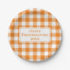 Plato De Papel Feliz Naranja White Gingham Plaid