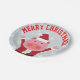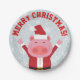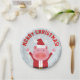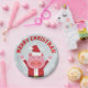 Ilustracion de un lindo cerdo vestido de Santa parado en una escena de invierno. El texto dice: "¡Feliz Navidad!"