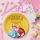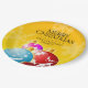 Sirva a un inolvidable fiesta de Navidades (y sea la charla de la mesa) con este plato de papel festivo, que presenta el saludo "Feliz Navidad" en un cálido fondo amarillo con brillantes copos blancos de nieve y un trío de adornos coloridos para las fiestas. Personalizar con el nombre de la familia y/o el texto de su elección. Diseño © W.H. Sim. Ver más en zazzle.com/expressionsoccasions