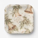 Plato De Papel Feliz Navidad con campanas rusticas y follaje