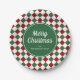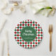 Festividad Personalizada Green Checkeó Merry Christmas Paper Plates.